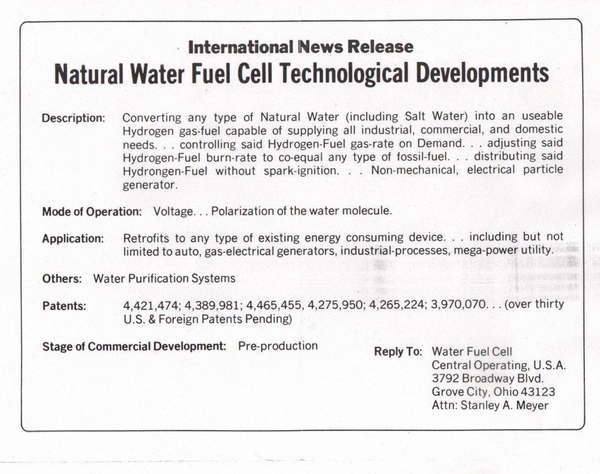 Stan Meyer Image Archive: News Release #9